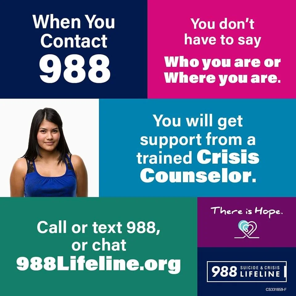 Suicide Hotline: (800) 273-TALK or (800) SUICIDE